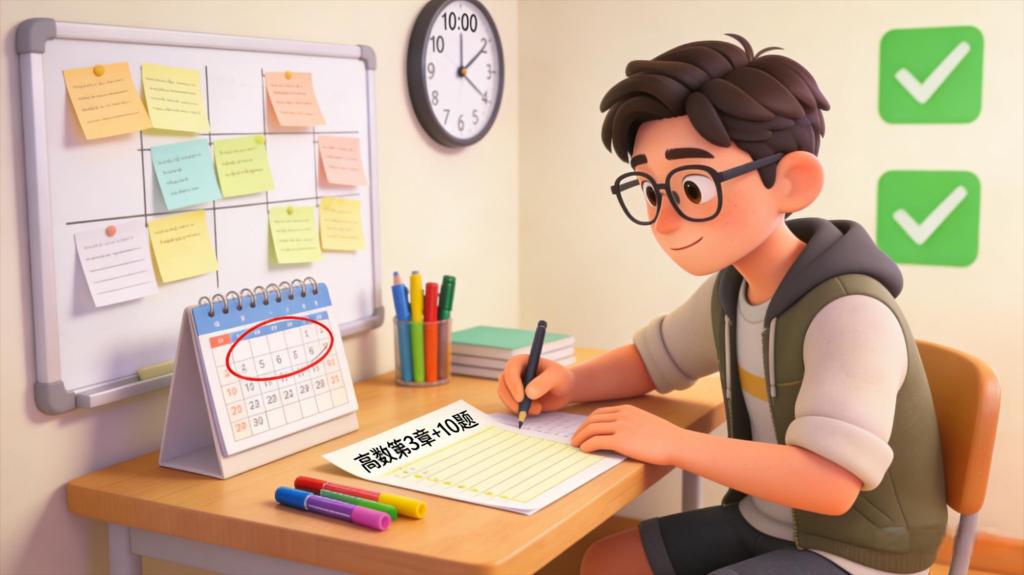 拆每日任务:按“先考先学、难科配精力高峰”细化,如“高数复习第3章,完成10道计算题+整理5个易错点”。