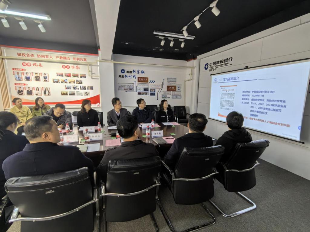 为深入了解我院校外实习基地建设情况,进一步深化校企合作,促进产教融合,11月15日,人事处处长徐立新带队前往中国建设银行新乡分行校外实习基地进行考察,人事处副处长王崇科、学工部副部长闵强、经济学院院长魏芳、金融数学教研室主任赵梦和相关实习指导教师陪同调研。