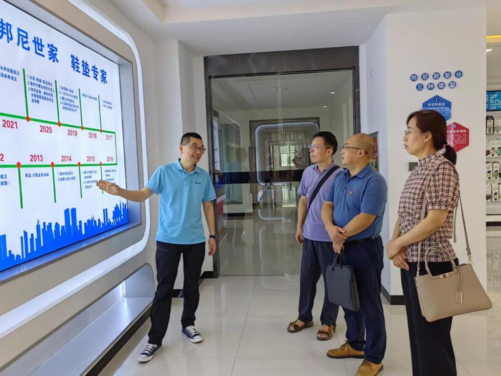 河南邦尼生物工程有限公司是一家专注于鞋垫研发、生产和销售于一体的企业,公司建立了以产学研用协同创新为一体的核心科研体系,积极与多所高校展开合作,尤其在跨境电商销售方面成绩突出。会上,魏芳院长首先介绍了学院的基本情况并表达了合作意愿,随后李宁总经理和王威董事长分别就跨境电商发展的现状和趋势进行了分析,指出未来新媒体营销的海外市场空间较大,双方可以就这方面展开合作;然后双方围绕学生实践能力培养、实习就业等具体事宜进行了深入交流。座谈结束后,李宁总经理还带领考察组一行参观了公司样品间,详细介绍了公司的发展历程。