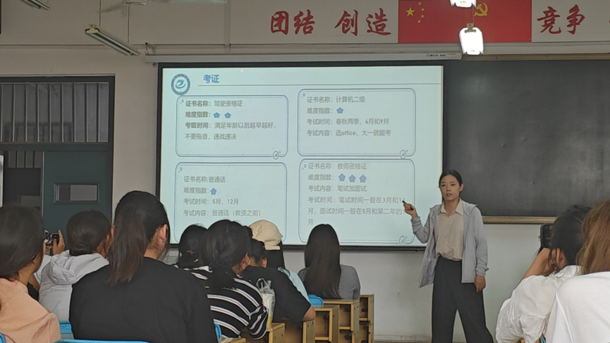 田立老师作为新生班主任,从考证、考研、就业三个方面为新生进行了宏观层面本科阶段的“四年规划”,帮助新生把握大学四年的整体学习节奏。