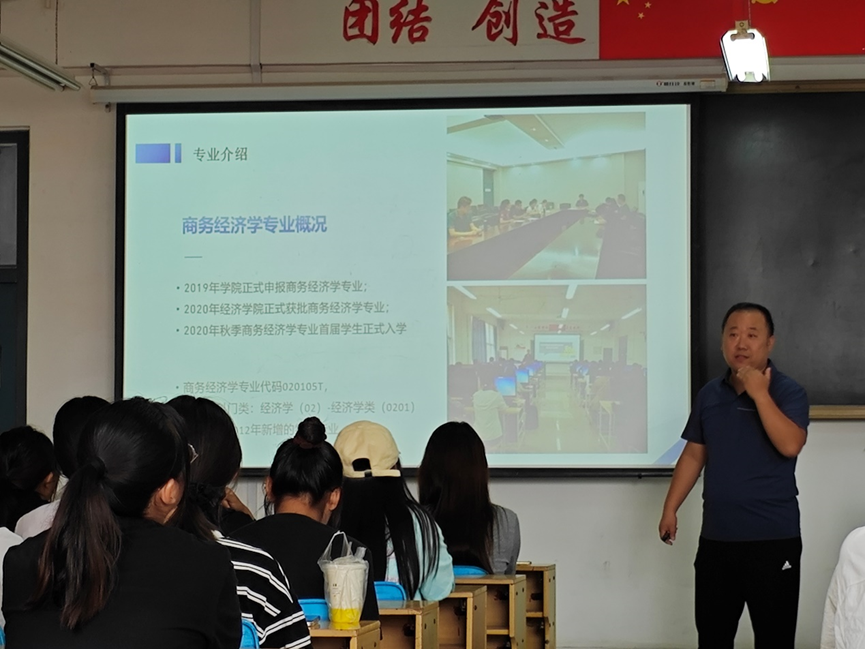 随后,王世胜副院长对王动老师的汇报进行了补充,从就业、考研、社会实践、学生竞赛等方面再次详尽介绍了商务经济学专业的过去历史和未来发展,以及历届优秀毕业生情况,鼓励同学们做好目标转变、角色转变。通过王世胜副院长的精彩讲解,新生们更加坚定了对未来发展的信心,并对未来的学习生活充满了期待。