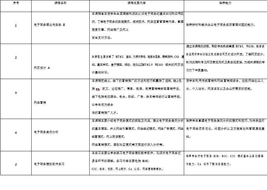 专业名称 电子商务专业代码 630801
