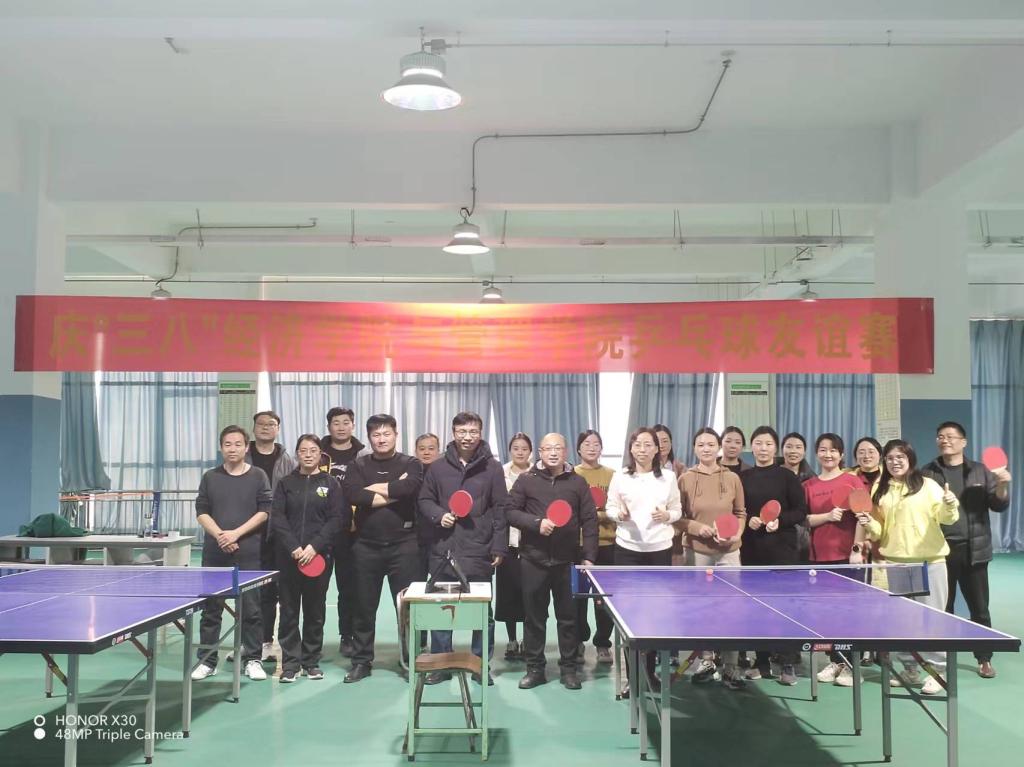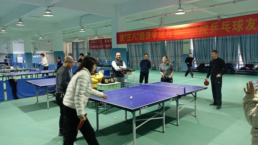 为庆祝“三八”国际妇女节,丰富校园文化体育活动,营造和谐的校园氛围,2024年3月7日经济学院分会与管理学院分会在科苑乒乓球馆开展了一场热情洋溢的“乒乓球友谊赛”。